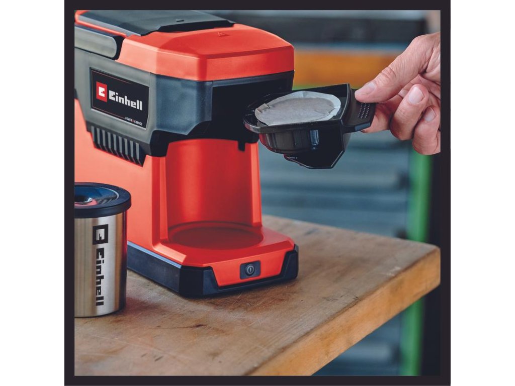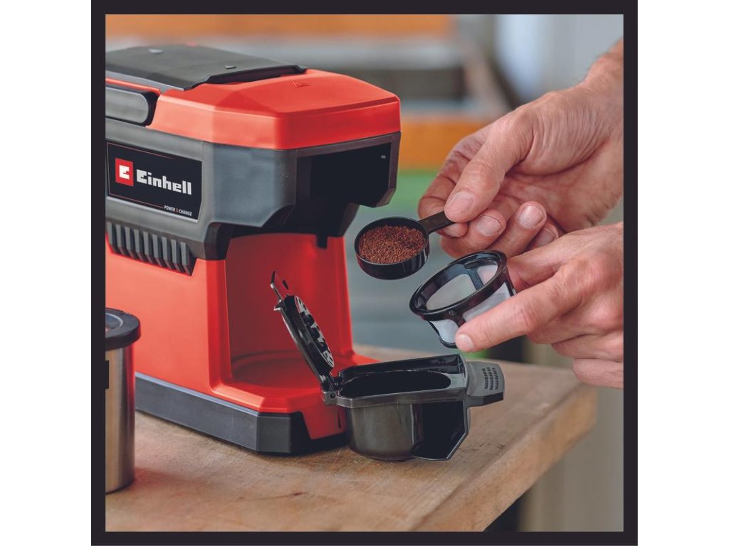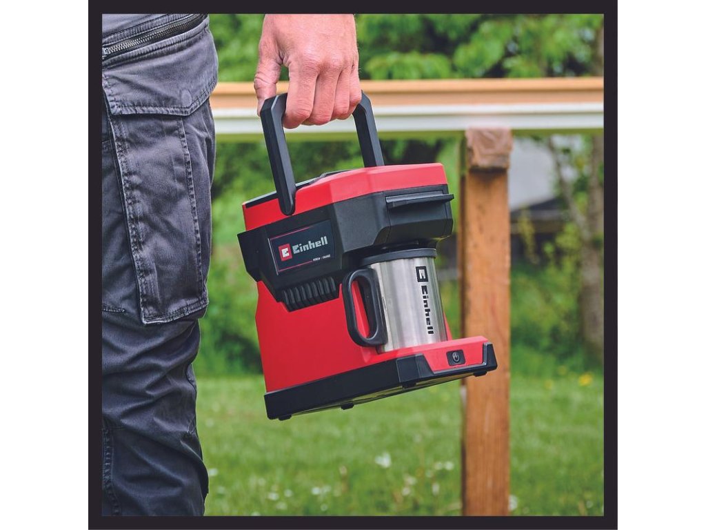Aku kávovar Einhell je ideální na cestách: lehký, praktický a bez kabelů. Sada obsahuje veškeré příslušenství, které potřebujete k vychutnání kávy. Včetně prachotěsného, 90 mm vysokého šálku z nerezové oceli, který pojme až 240 ml, odpovídajícího víčka, odměrky, nádoby na mletou kávu s kávovým filtrem a nádoby na běžně dostupné kávové kapsle.