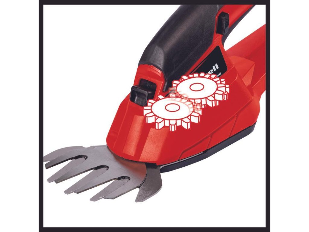 Nůžky GE-CG 18 Li-Solo umožňují snadné systematické stříhání keřů a trávy. Robustní kovová převodovka zajišťuje optimální přenos energie na laserem řezané a diamantem broušené nože.
