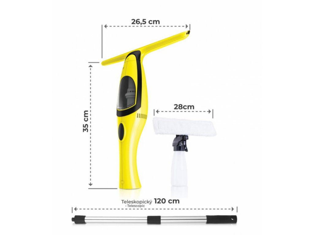 Vybaven je také nádrží na znečištěnou vodu, která udrží až 50 ml nečisté vody. Díky 65 cm teleskopu se dostanete i na nejvzdálenější místa.