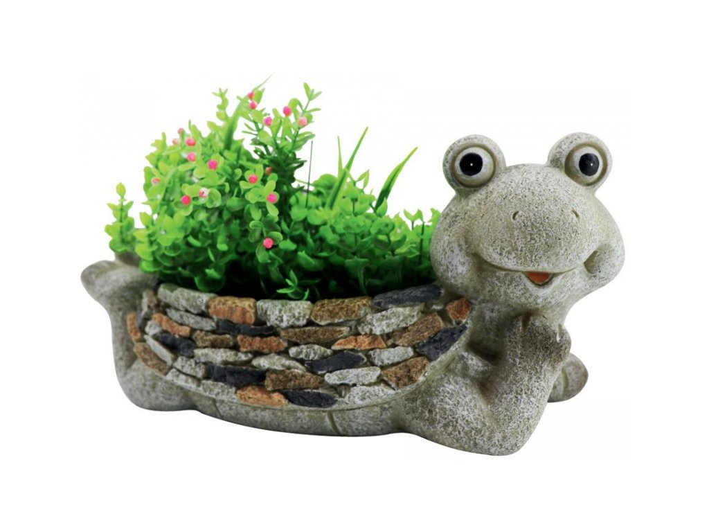 Keramická dekorace Gecco 4004 žába s květináčem ozdobí každou zahradu či dvůr Dekorace vynikne i jako pestrobarevné ozvláštnění záhonu mezi květinami a keři.Rozměry dekorace jsou 35 x 16 x 17 cm