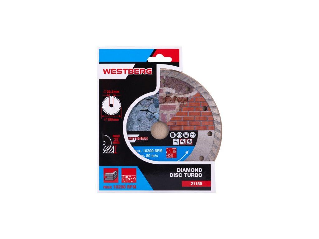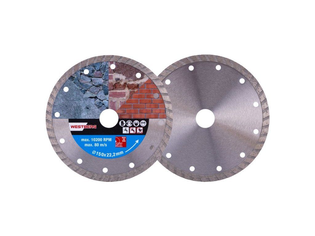 Diamantový kotouč DIAMANTProvedení : TURBO, kvalitní materiály i zpracování, speciální tvar diamantových segmentů i konstrukce a pevné uchycení k nosnému disku kotouče, vysoký obsah diamantového prachu