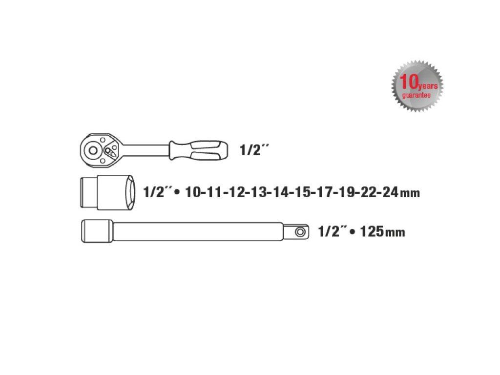 - Kvalitní gola sada je vhodná díky kvalitě použitých materiálů a zpracování v profesionální autodílně nebo servisu 10 let záruka - Všechny části jsou vyrobeny z vysoce kvalitní chrom-vanadiové oceli - Niklová povrchová úprava - Hroty bitů jsou ze slitiny oceli S2 - Ráčny mají jemné dělení 72 zubů, tělo ráčny z CrV oceli, zubový mechanismus z S2 oceli, ergonomicky tvarovanou rukojeť se zdravotně nezávadnou gumou - Nový design plastového kufru z primárního materiálu s kovovými uzávěry a panty víkaDoplňkové parametry