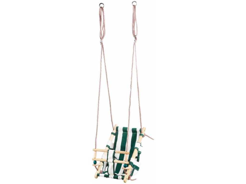 Plátěná dětská houpačka zelené barvy je přizpůsobena pro ty nejmenší. Díky svému polo-ležatému tvaru do ní jednoduše dítě uložíte.