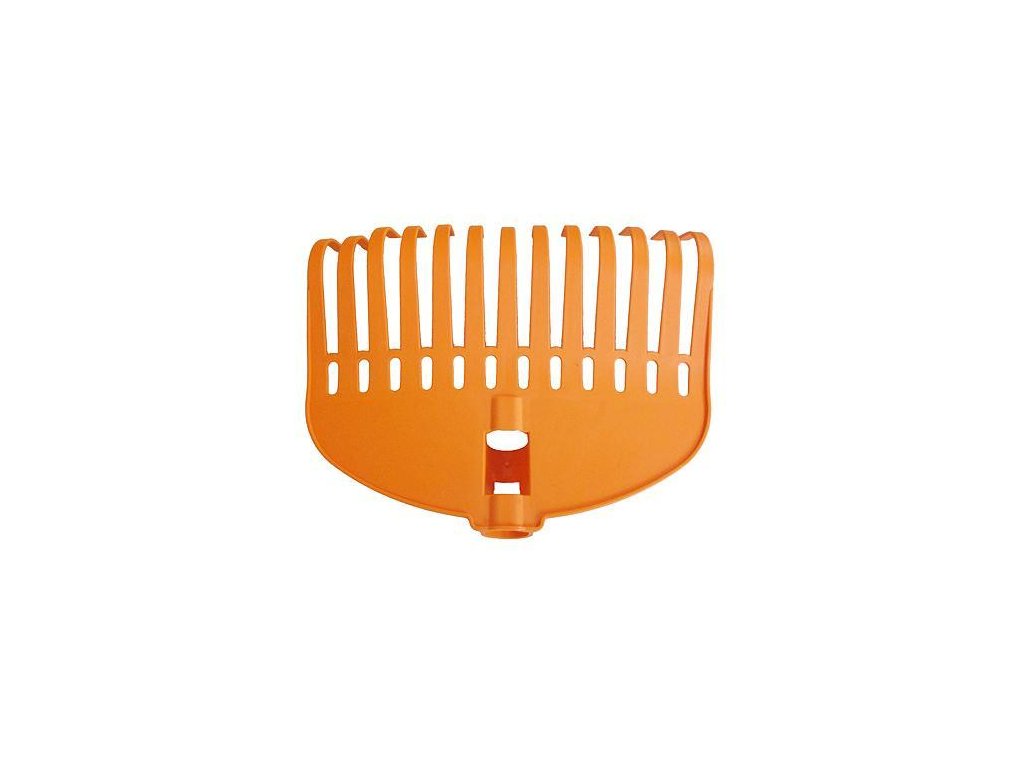 Plastové, pružné hrábě se zahnutými hroty uspořádanými do tvaru vějíře.