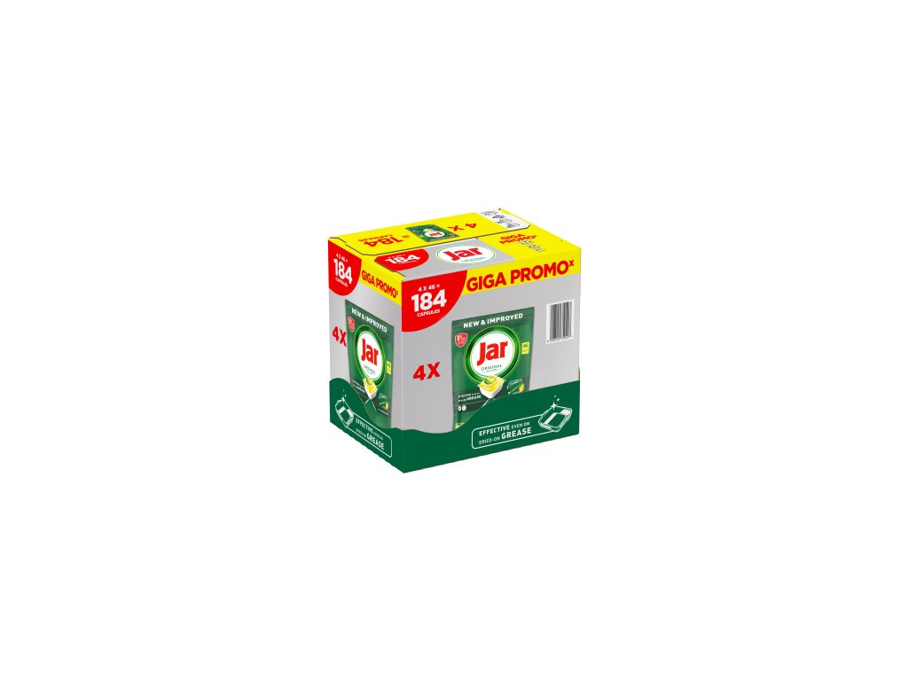 Jar spojuje v jedné účinné kapsli tekutý i práškový prostředek na mytí nádobí. Obal se rychle rozpouští a funguje dobře i při krátkých cyklech, takže nádobí se začíná ihned umývat.