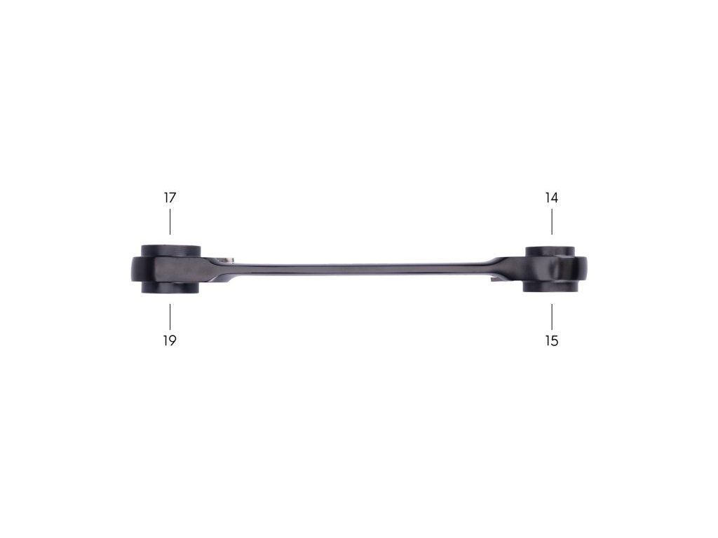 ráčnový kombinovaný klíč 4 v 1 - 14, 15, 17 a 19 mm tělo klíče - kvalitní chrom-vanadiová ocel (CrV), nejnamáhanější ráčnová část klíče - chrom-molybdenová ocel (Cr-Mo) ráčnový mechanismus se 120 zuby - umožňuje manévrování klíče v rozsahu jen 3° klíč nahrazuje 4 často používané rozměry - ideální do mobilních nářaďových boxů - šetří prostor a hmotnostDoplňkové parametry