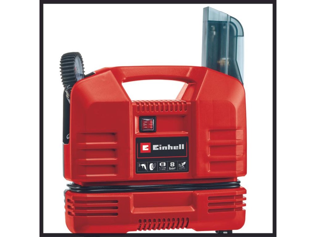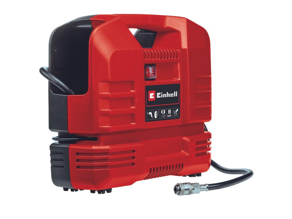 S přenosným kompresorem Einhell TC-AC 190 OF Set můžete být vybaveni na celou řadu praktických úkolů, kdykoli a kdekoli. Vysoce výkonný vzduchový kompresor má plochý design, snadnou obsluhu, je uživatelsky přívětivý a hodí se jak pro trvalé použití v dílně a garáži, tak jako "záloha" v autě. Kompaktní a praktický kompresor je ideální k mobilnímu huštění pneumatik automobilu, kol, motocyklu nebo jako "vzduchová pumpa" pro letní zábavu u vody. I v dílně se dokonale hodí k práci třeba v kombinaci s foukacím nástavcem pro čištění pracovních ploch. Nabídka společnosti Einhell zahrnuje široký sortiment praktického příslušenství ke kompresorům. Přenosný kompresor s maximálním tlakem 8 barů je poháněn bezolejovým motorem, jenž nevyžaduje servis a má malé nároky na údržbu. Kompaktní a lehká konstrukce usnadňuje přenášení. Pro skladování potřebuje jen malý prostor. Na krytu je umístěno navíjení kabelu, integrovaný úložný prostor pro hadici a foukací pistoli, stejně jako další úložný box pro adaptéry. Výrobek je dodáván s 3metrovou hadicí na stlačený vzduch s rychlospojkou, foukací pistolí s manometrem na měření tlaku a 3dílnou sadou adaptérů.Hmotnost výrobku (kg):5.05