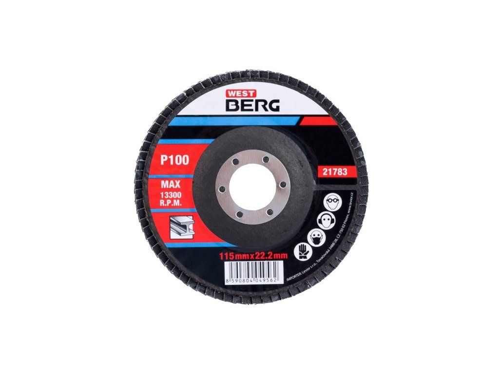 - Lamelový kotouč, zrnitost: 115 druh zrna: oxid hlinitý pojivo: umělá pryskyřice podkladový materiál: pružná tkanina - 100% bavlna (240-260g/m2) provedení: vyhnutý otvor : 22,2mm, max. pracovní rychlost : 80m/s, max. přípustné otáčky: 13300 1/min, použití : broušení, obrušování, odrezování, odstraňování nátěrů - Rozměry : uvedeny v názvu výrobkuDoplňkové parametry