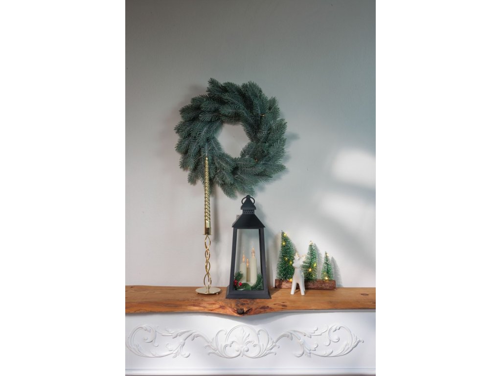 Vánoční lucerna MagicHome v elegantním černém provedení s imitací svíček je krásným doplňkem, který navodí příjemnou atmosféru svátků. Díky 3 žlutým LED světlům vytváří efekt jemného, ??teplého světla, které působí jako skutečné plamínky svíček.