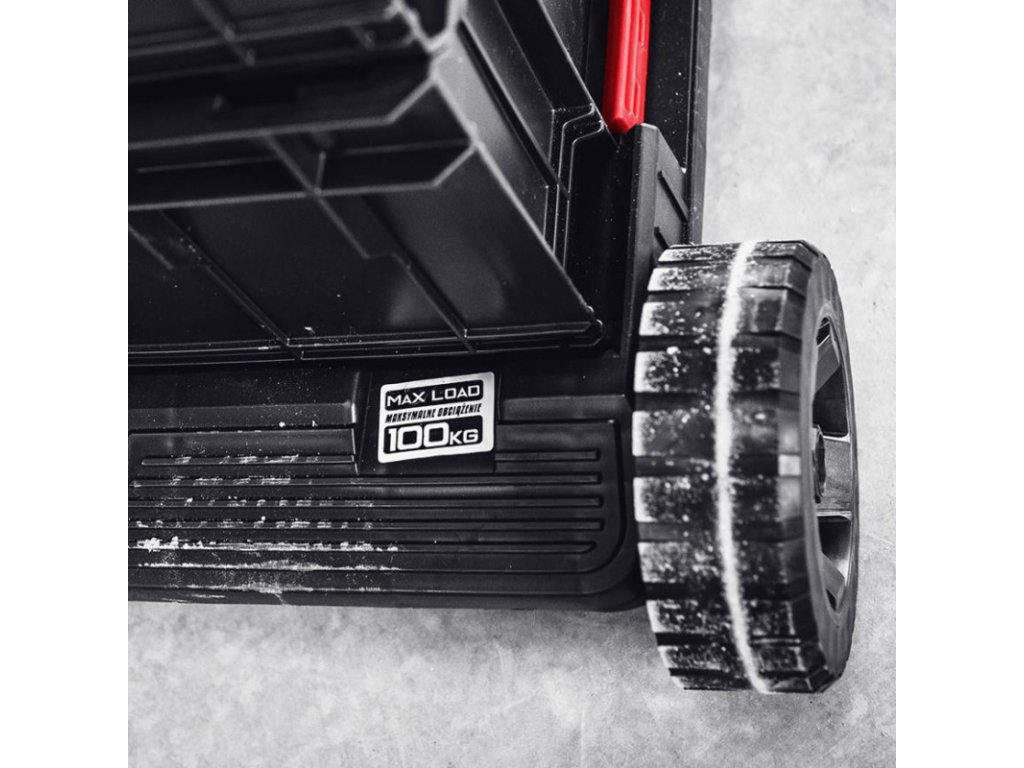 - 2 gumové odolné kola pomocí kterých projdete i přes překážky jako např. schody, rampy nebo bláto- 2 kovové otočná kolečka s brzdou zajišťují vynikající ovladatelnost a chrání soupravu před nechtěným pohybem