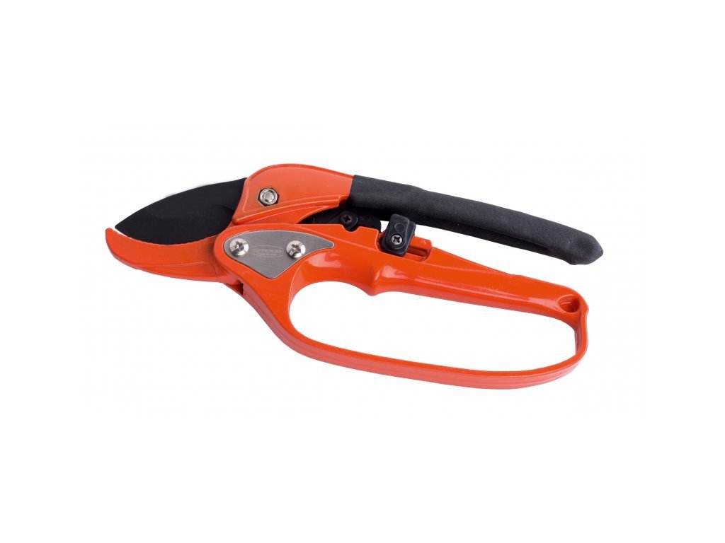 Zahradnické nůžky - s rohatkou, rohatka umožňuje krokové stříhání a tím lépe přenáší sílu a usnadňuje práci a namáhání při střihu.- uzavřená rukojeť pro větší bezpečnost a možnos zavěšení