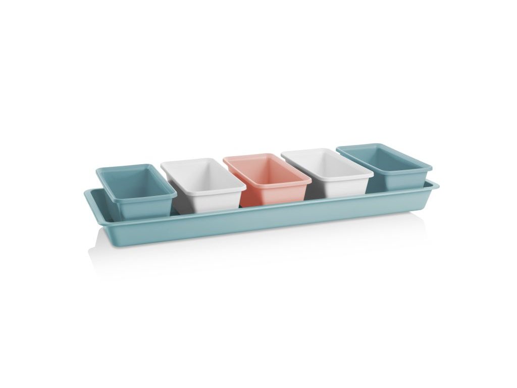 Tento komplet pěti malých truhlíků na tácku se skvěle hodí pro pěstování bylinek nebo pro předpěstovávání rostlin.