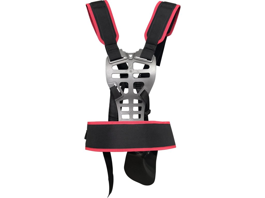Popruh je navržen s důrazem na ergonomii a stabilitu. Nastavitelné ramenní popruhy umožňují přizpůsobení různým typům postavy, čímž se zvyšuje komfort při sečení a přesnost ovládání stroje. Robustní provedení zajišťuje spolehlivé držení křovinořezu po celou dobu práce.