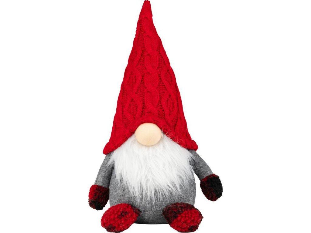 Postavička MagicHome Vánoce, Skřítek s krátkýma nohama, látkový, červeno-šedý, 23x16x36 cm