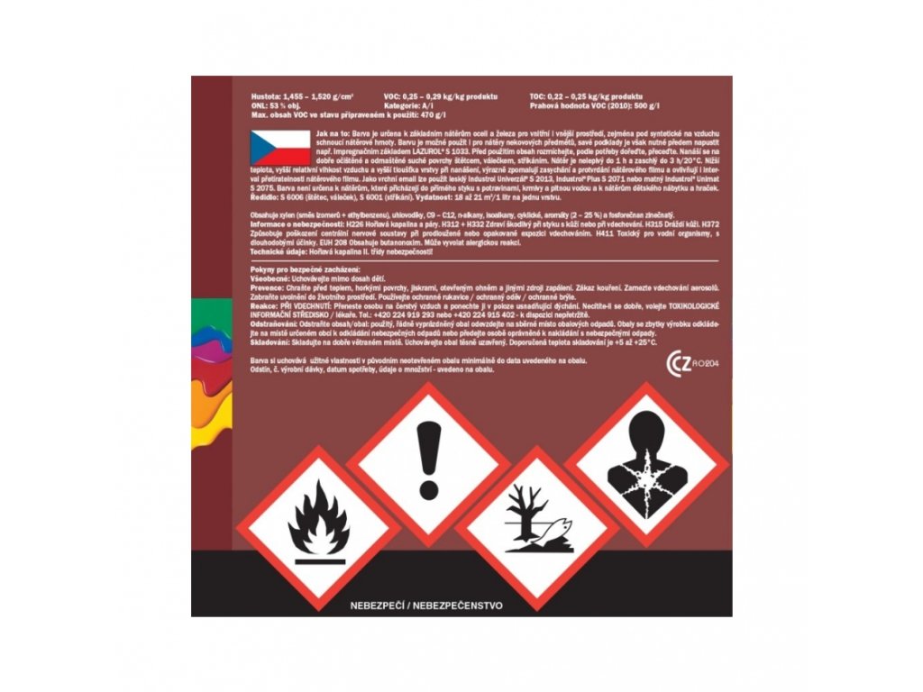 K základním antikorozním nátěrům oceli pro vnitřní i vnější prostředí, zejména pod syntetické a na vzduchu schnoucí nátěrové hmoty, k nátěrům např. plechových konstrukcí, strojů apod.