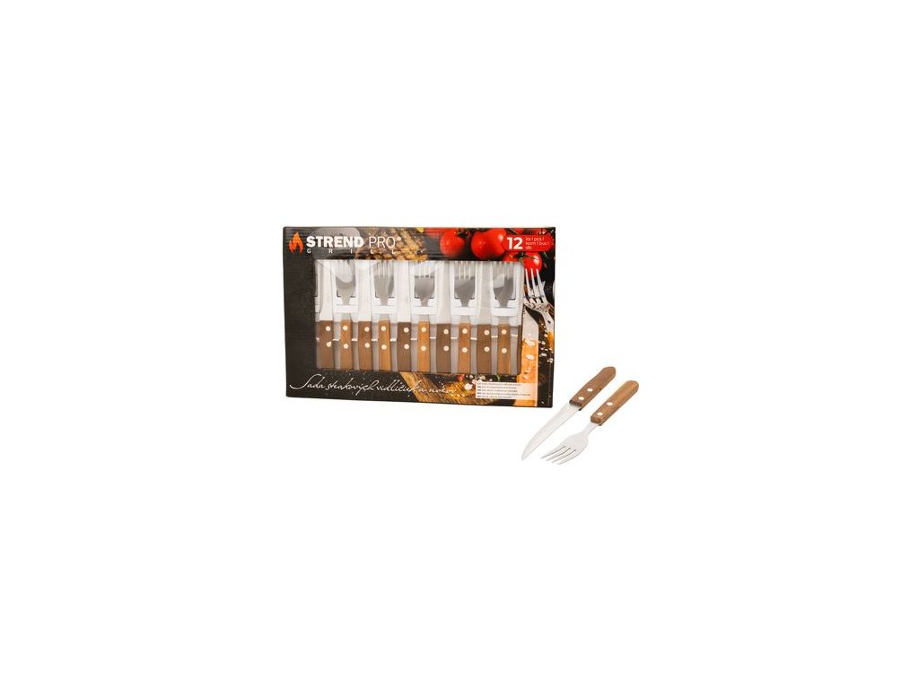 Příbor na steaky Strend Pro Grill, sada vidliček a nožů, 12-dílná