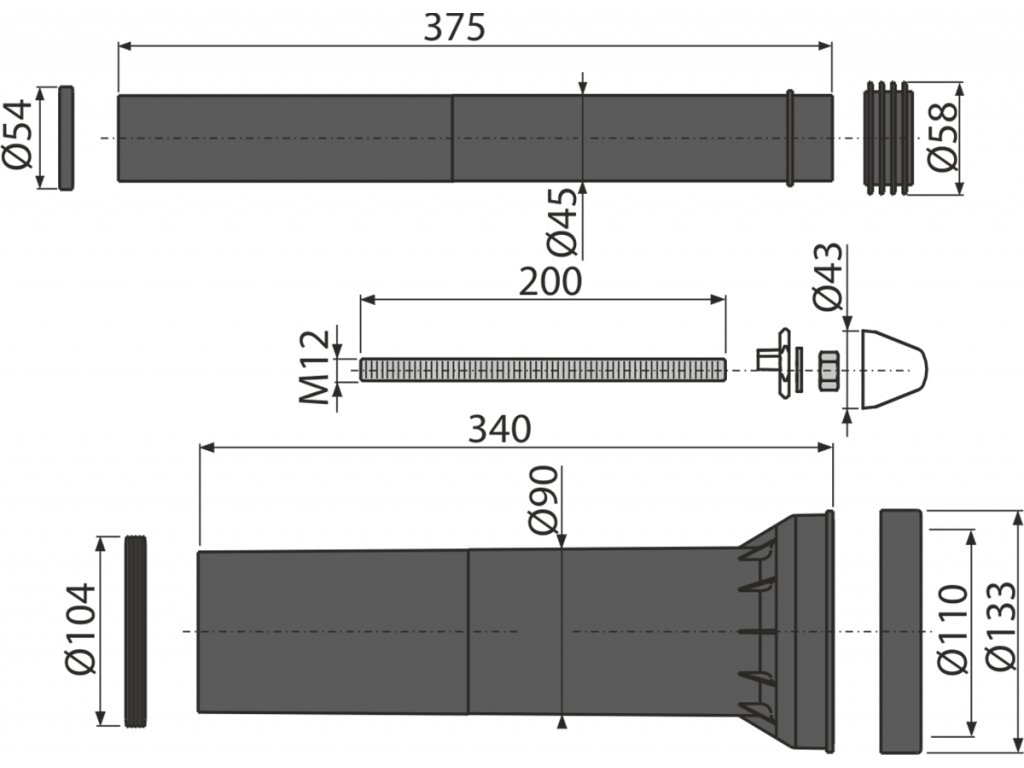 Propojovací prodloužený set pro WC - kompletní