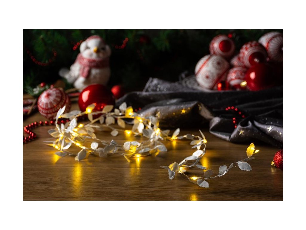 Řetěz MagicHome Vánoce Leafdeco, 20x mLED teplá bílá, 2xAA, IP 20, interiér, L- 1,90 m