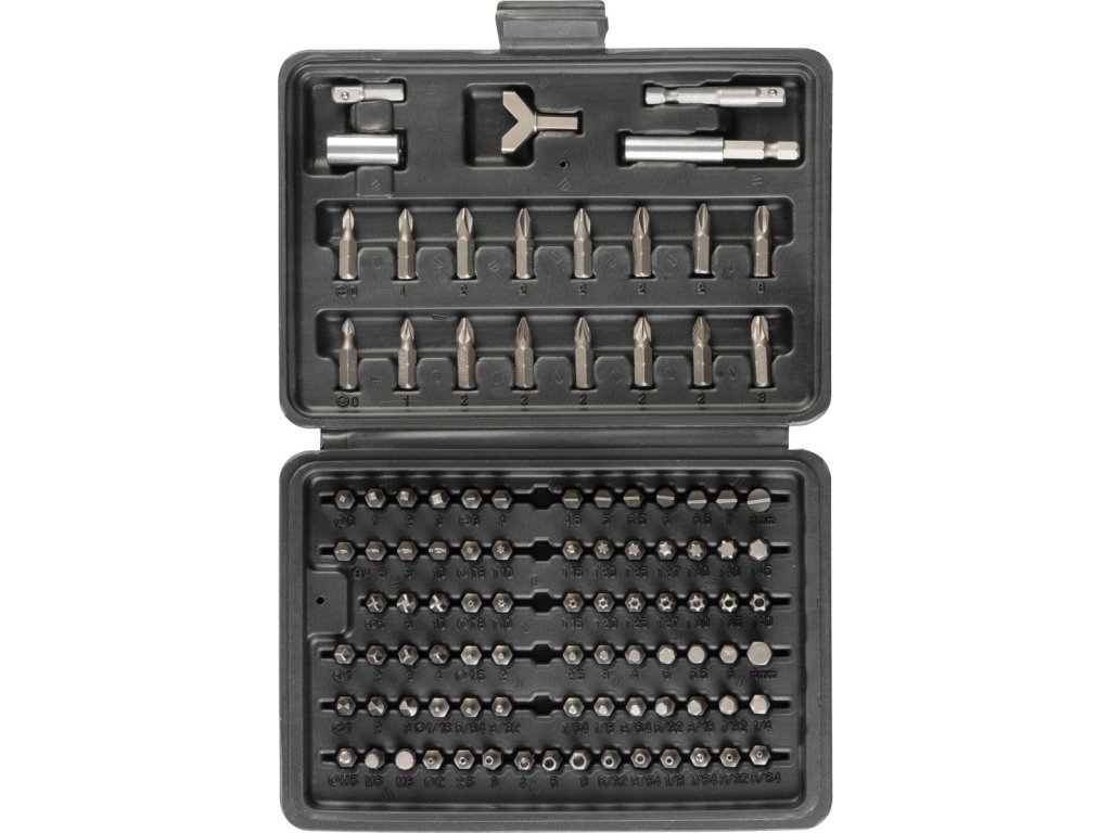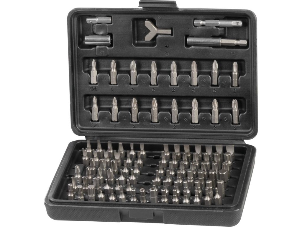 Sada je dodávána v praktickém kufříku, který umožňuje snadné přenášení a přehledné uspořádání všech 100 dílů. Díky širokému výběru bitů a adaptérů je tato sada ideální pro domácí opravy, profesionální použití či montážní práce.