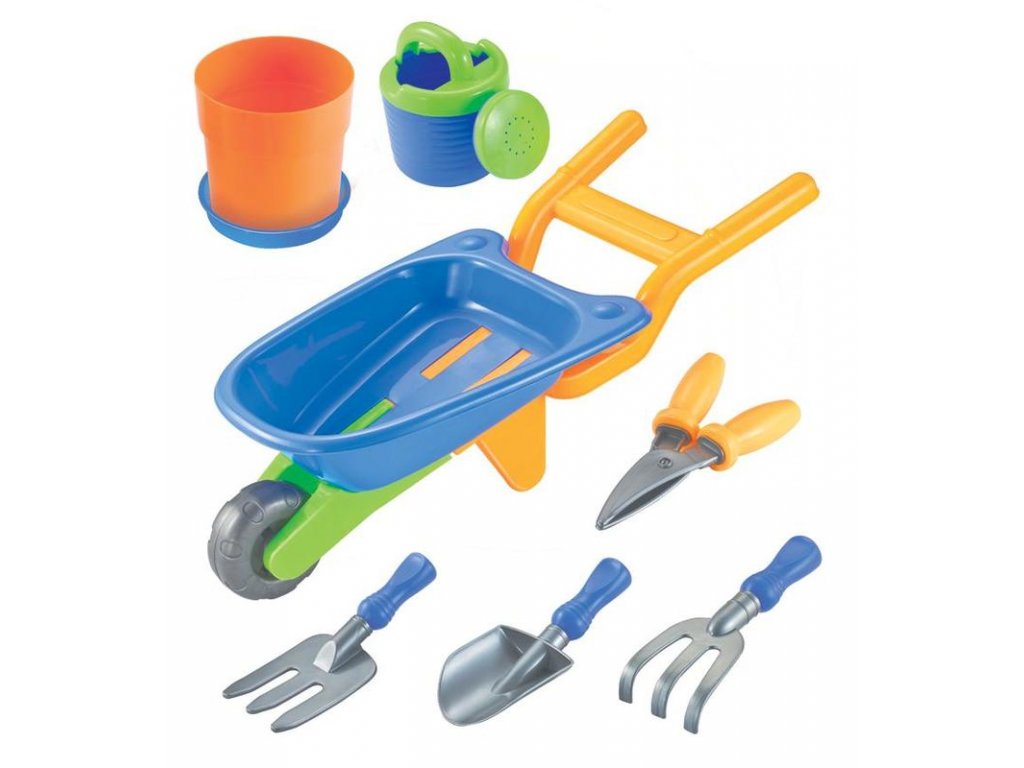 Dětská sada je určená na hraní v písku. Díky sadě budete mít o zábavu pro děti na pláži nebo v pískovišti postaráno.Sada se skládá: