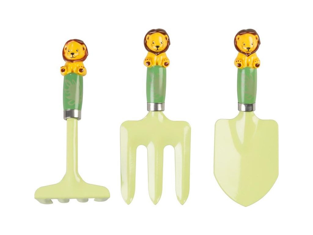 3-dílná sada: obsahuje lopatku, hrábě a vidle, základní nástroje přizpůsobené pro dětské ruce, což umožňuje dětem aktivně se podílet na zahradních pracích