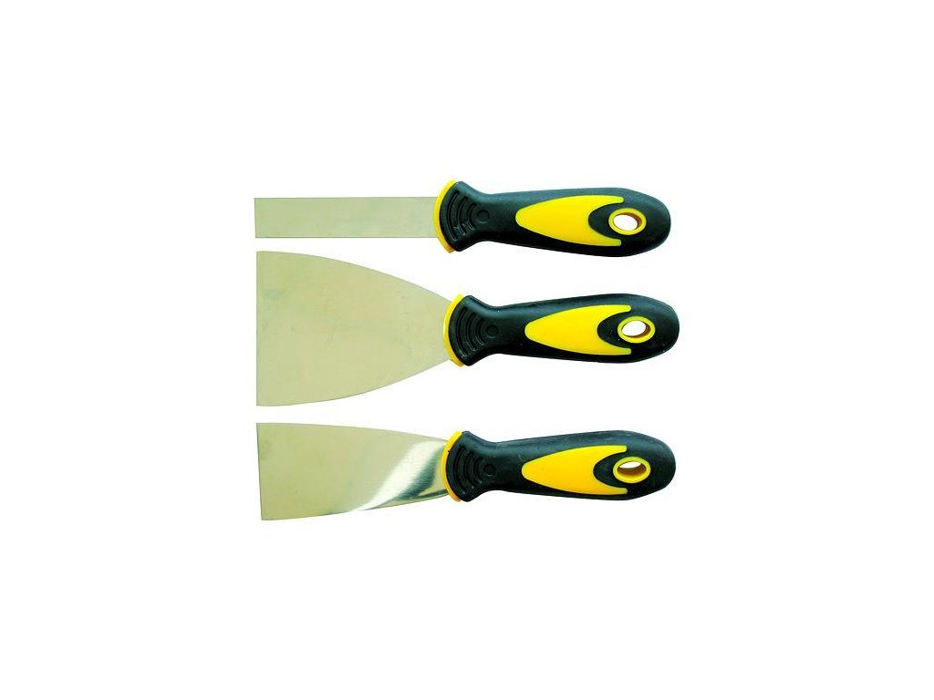 Sada stěrek by neměla chybět ve výbavě zedníků. Disponuje lehkou plastovou rukojetí a skládá se ze tří stěrek. Používá se k čištění děr, seškrabávání přebytečného materiálu a pod.Doplňkové parametry