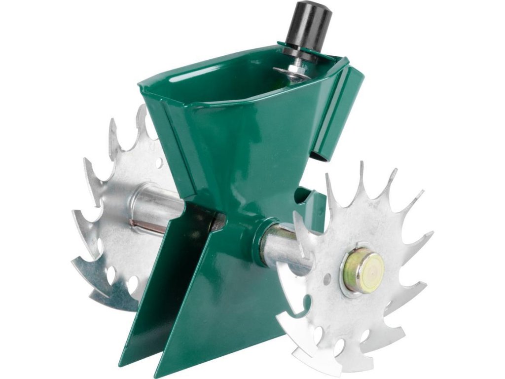 Jednořádková ruční secí stroj Strend Pro je vhodný pro osení menších ploch, pařenišť a skleníků. Hřídel je vybavena 3 druhy otvorů pro různé velikosti semen (1,5; 3,5 a 5 mm).Rozměr se nastavuje posunutím hřídele a koleček tak, aby zvolená velikost otvoru byla uprostřed násypky. Regulace vysévaného množství se provádí regulační maticí končícím kartáčkem.