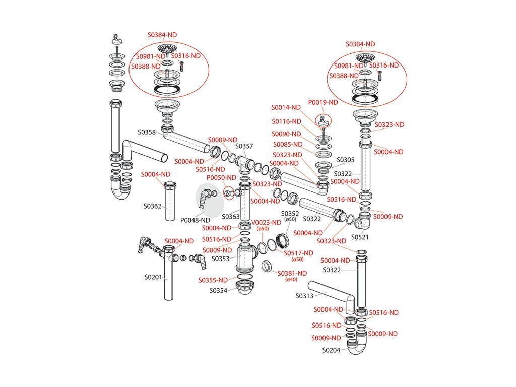 - Vývod odpadu připraven pro napojení odpadní trubky O50 nebo O40 mm