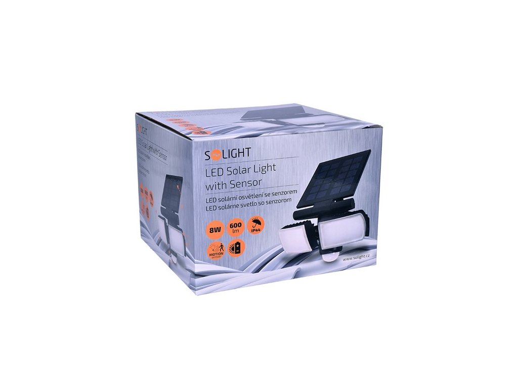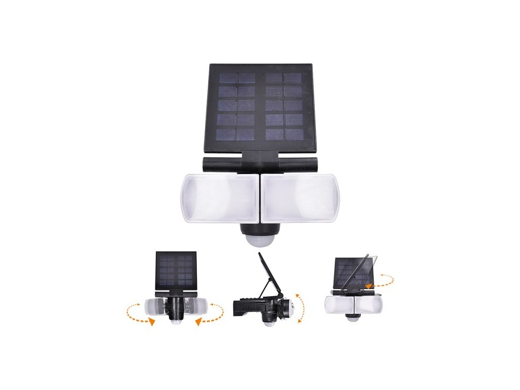 LED osvětlení se solárním panelem a nastavitelným světelným a pohybovým čidlem.