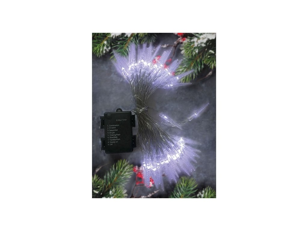 Solight LED venkovní rampouchy, 50LED, časovač, 8 funkcí, IP44, 3xAA baterie