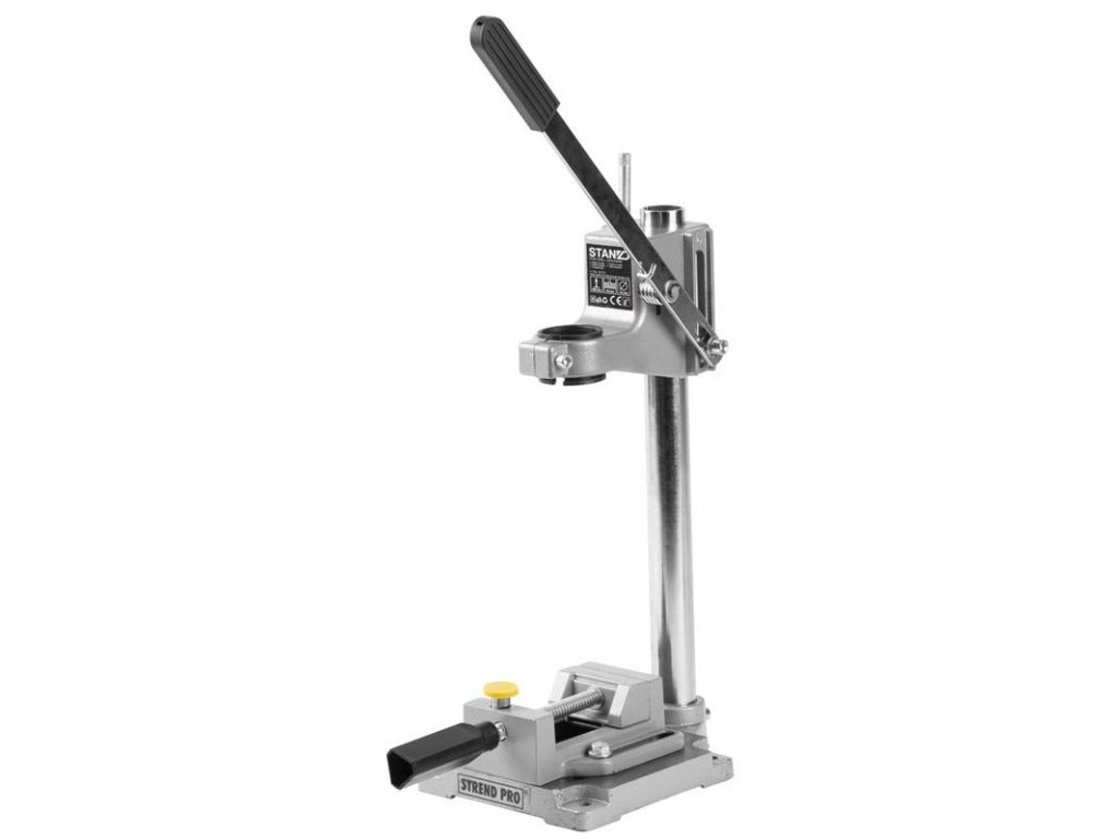 Klasický stojan na elektrickou ruční vrtačku vyroben z duralové slitiny hliníku, s ocelovým sloupem.