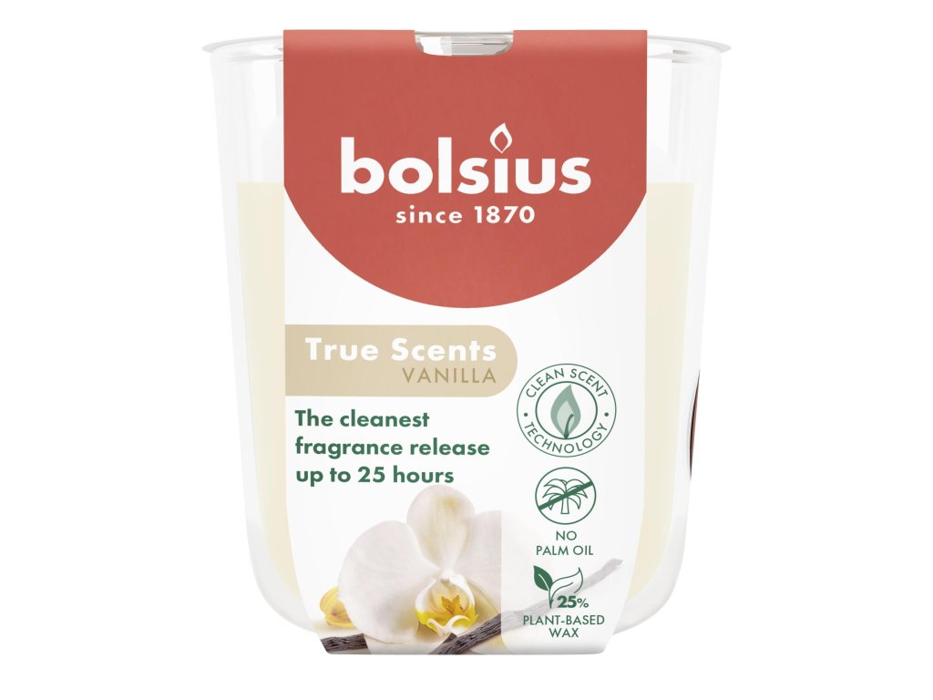 Svíčka Bolsius True Scents, vanilka, 80x73 mm, ve skle