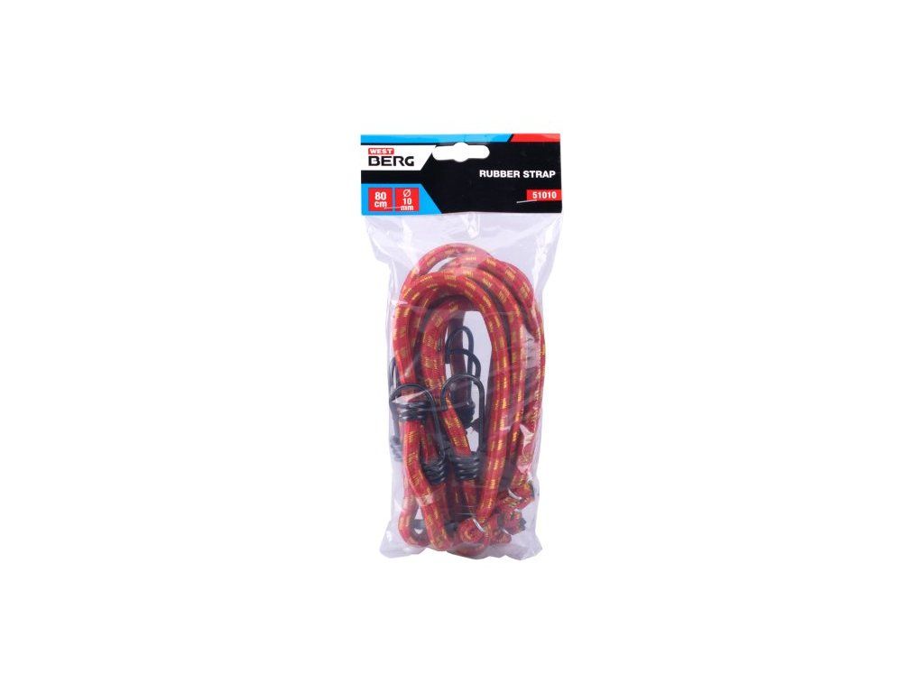 Elastické gumové víceramenné popruhy, opletené polyesterem a zakončené háky z ocelových poplastovaných drátů k uchycování zavazadel.Doplňkové parametry