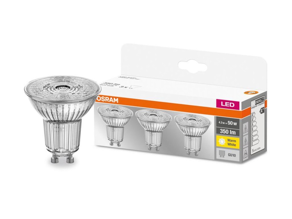 Žárovka OSRAM® BASIC LED GU10 50 (ean8392) 36° 4,3W/840 4000K MULTIPACK bal. 3 ks, sklo, Star CLASSICDoplňkové parametry